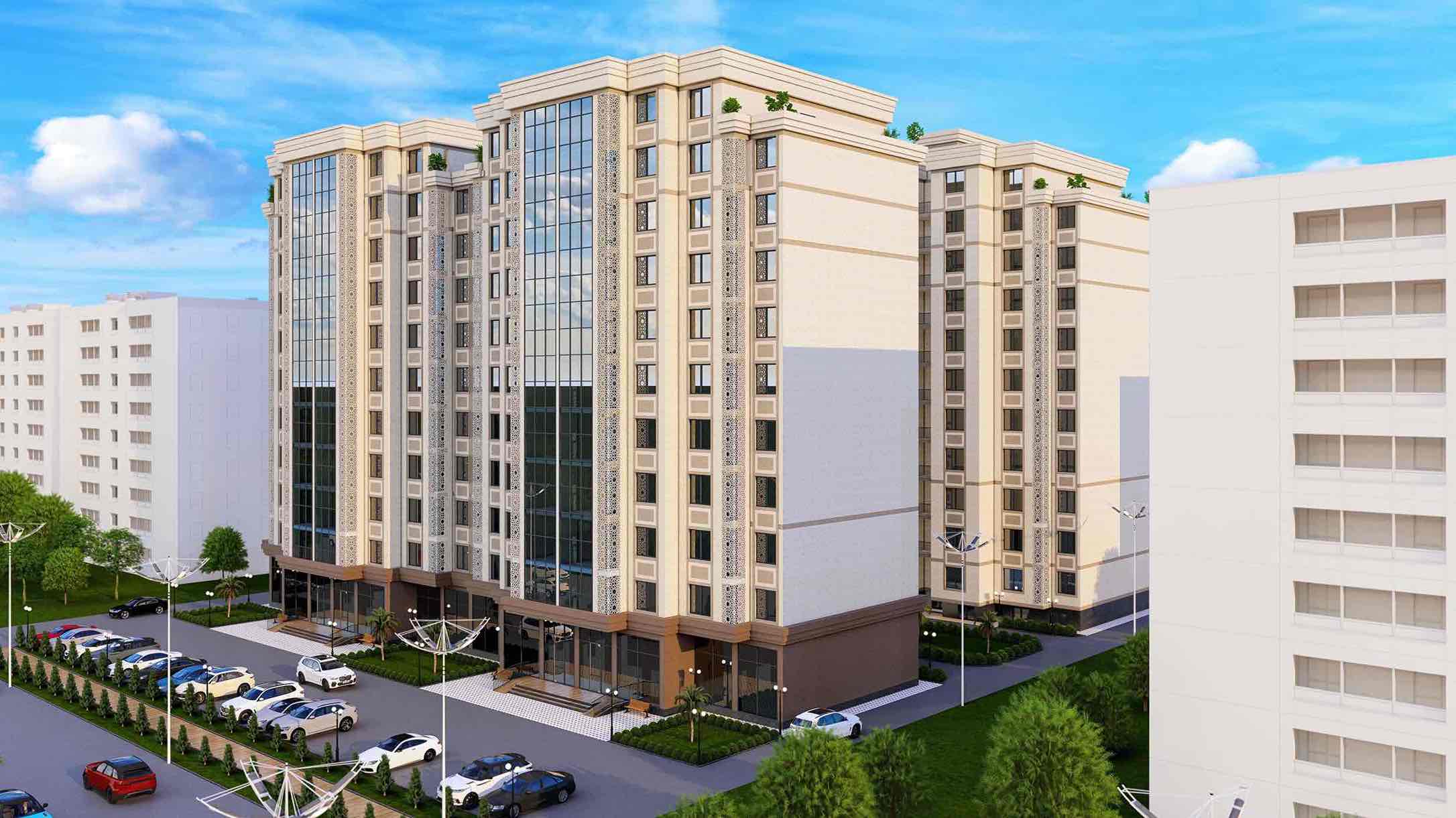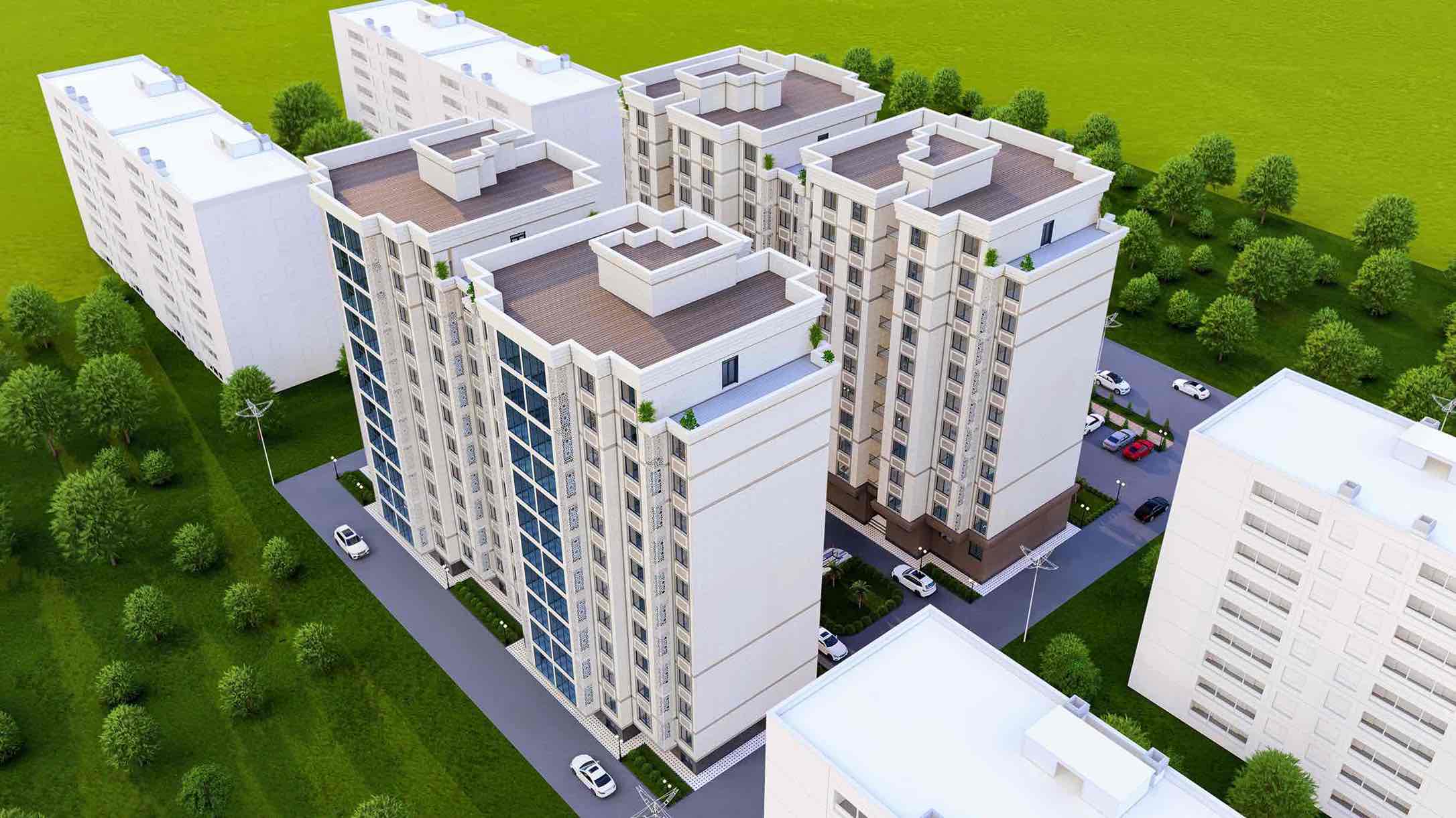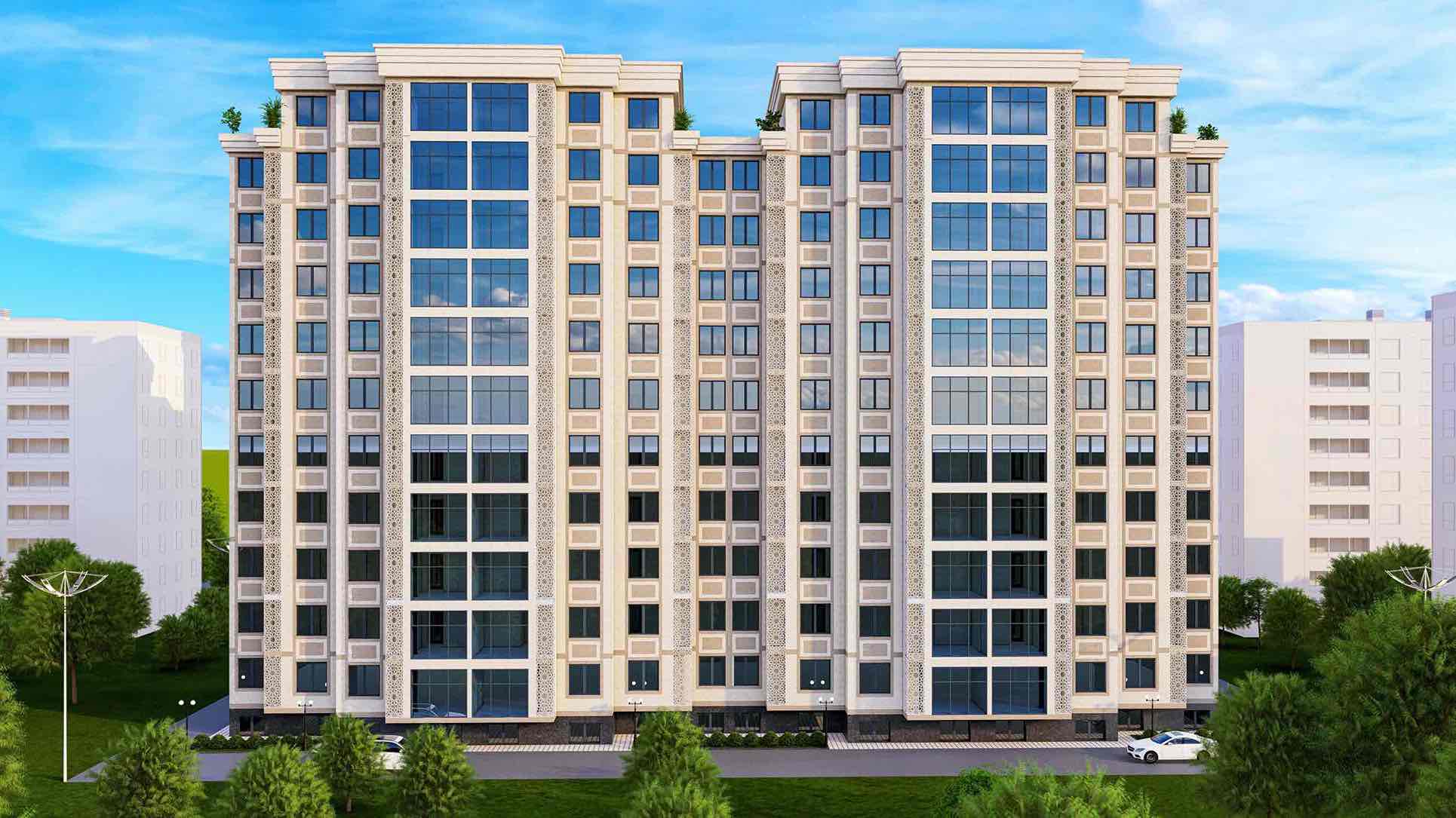 Современный 11-этажный жилой комплекс в одном из самых чистых и зеленых районов Худжанда.