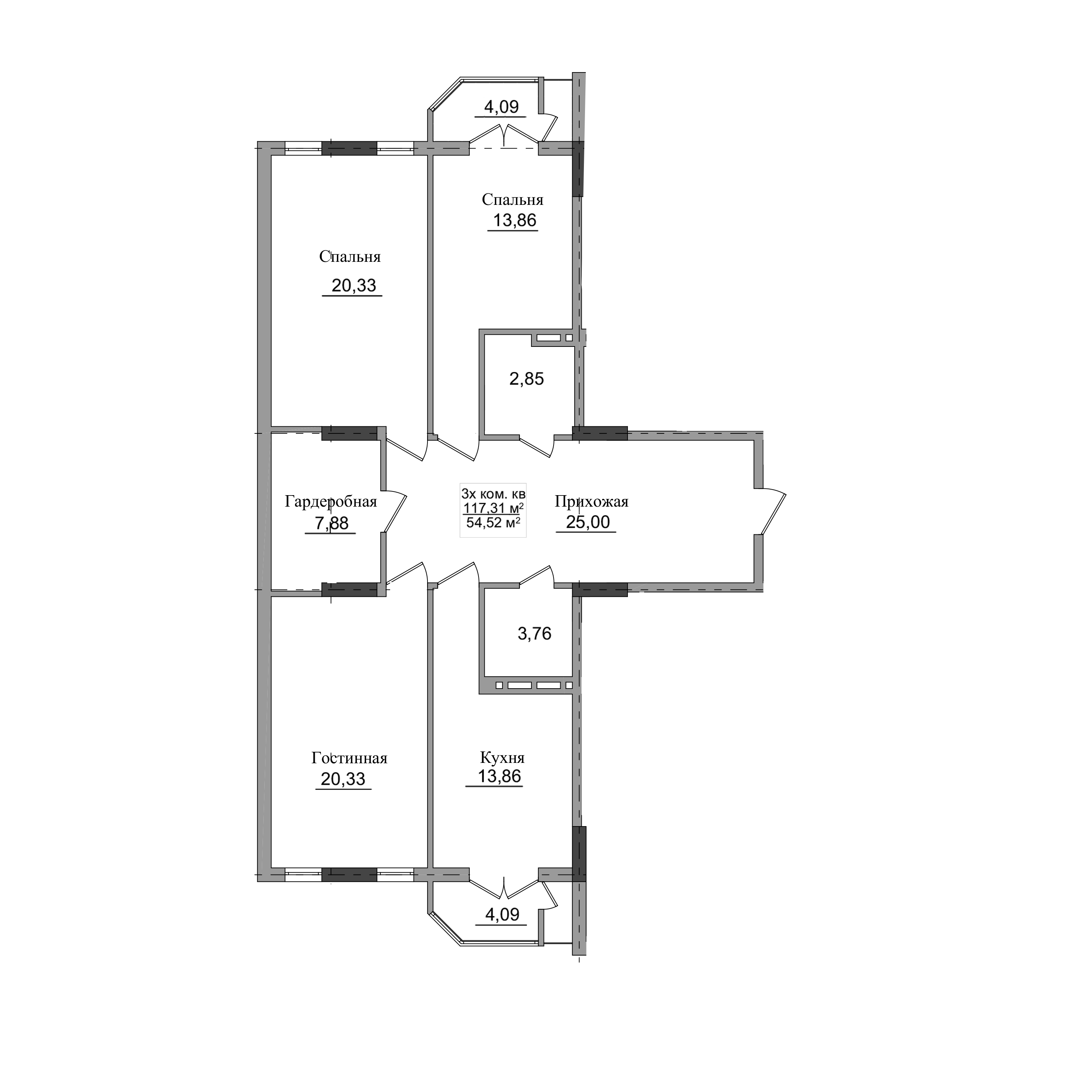3-комн. Квартира 117.31 м² в ЖК «Фирдавси Плаза»