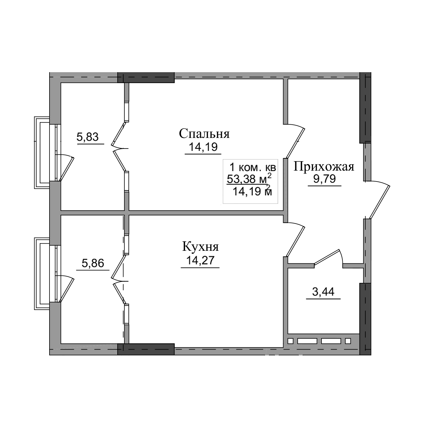 1-комн. Квартира 53.38 м² в ЖК «Фирдавси Плаза»