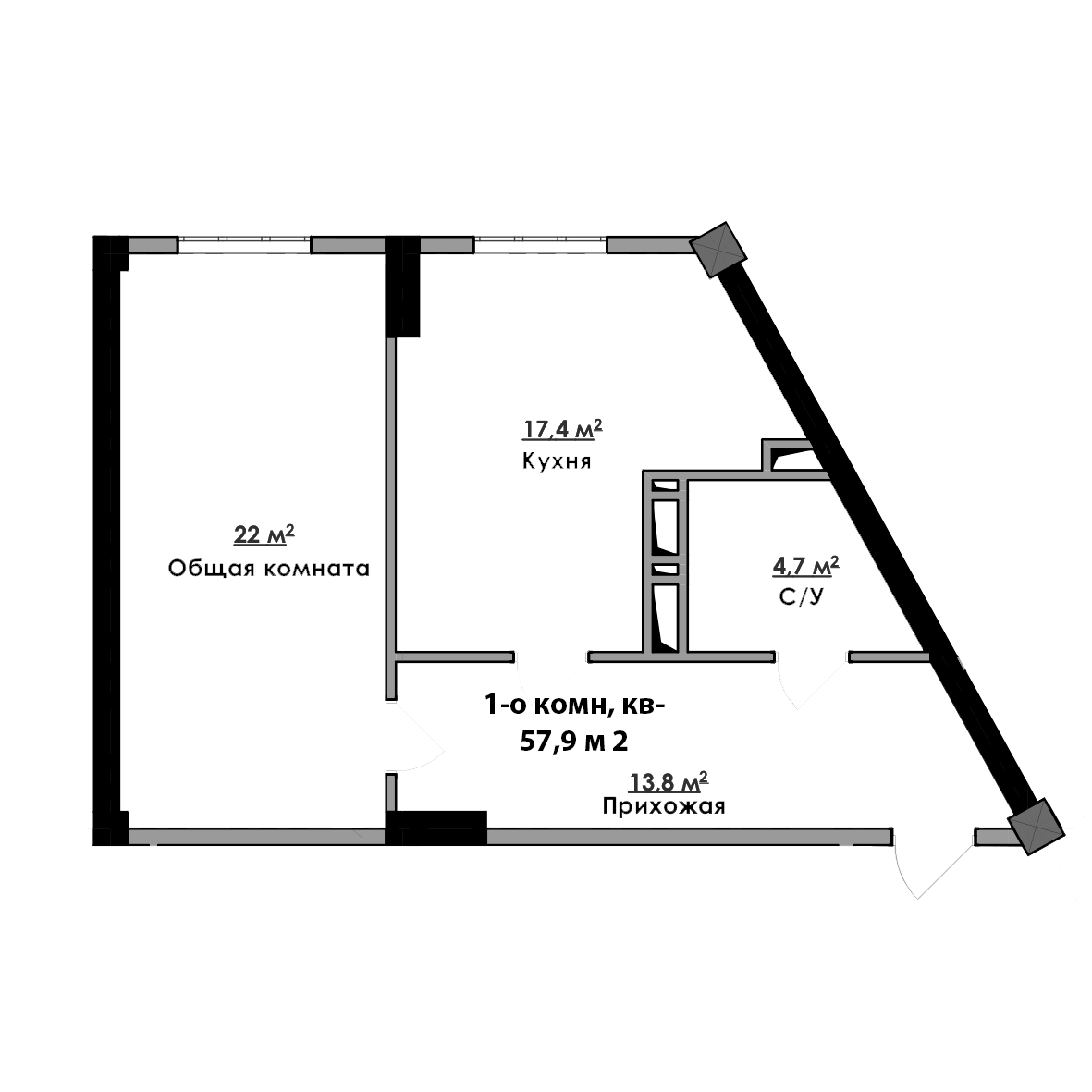 1-комн. Квартира 57.90 м² в ЖК «Империал»