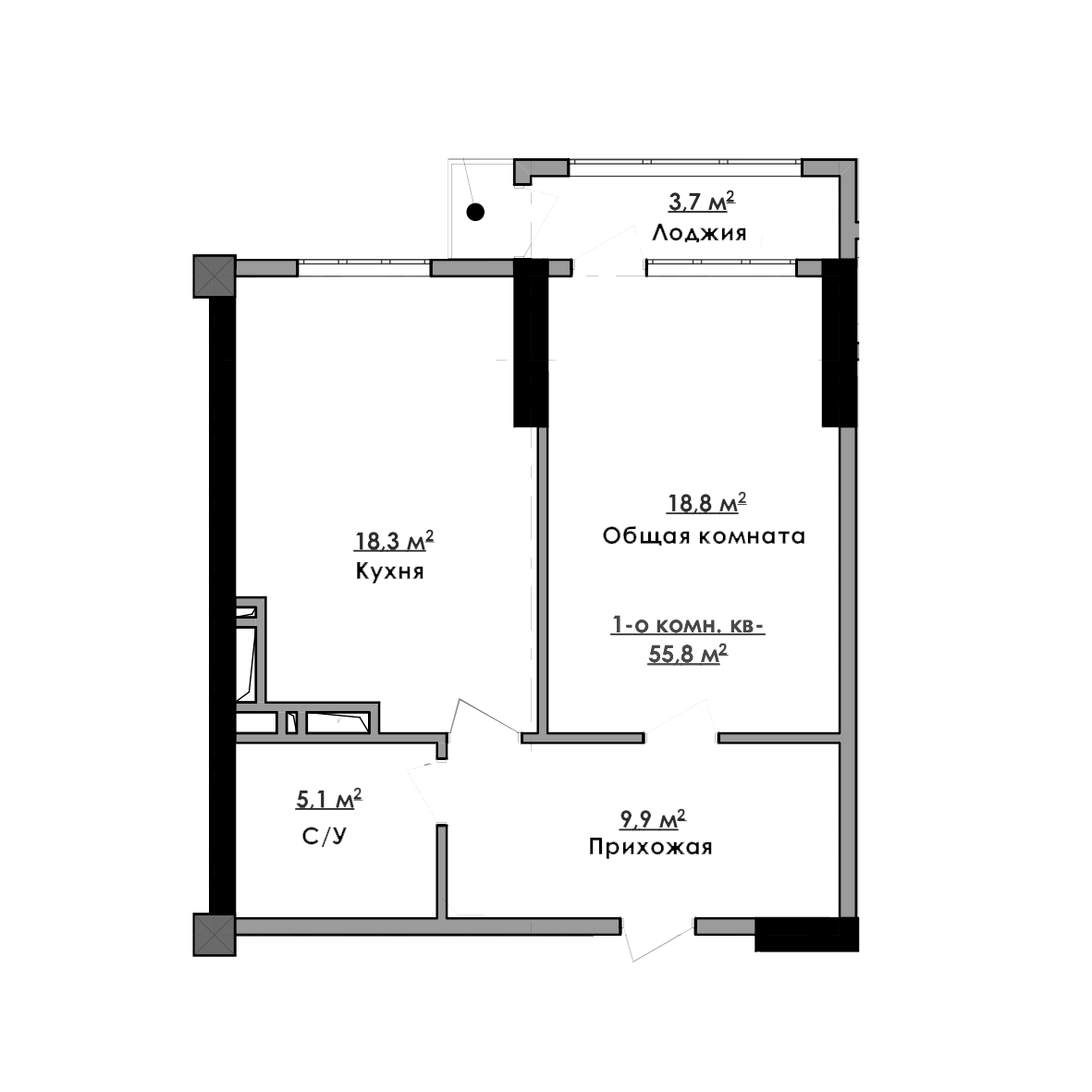 1-комн. Квартира 55.80 м² в ЖК «Империал»