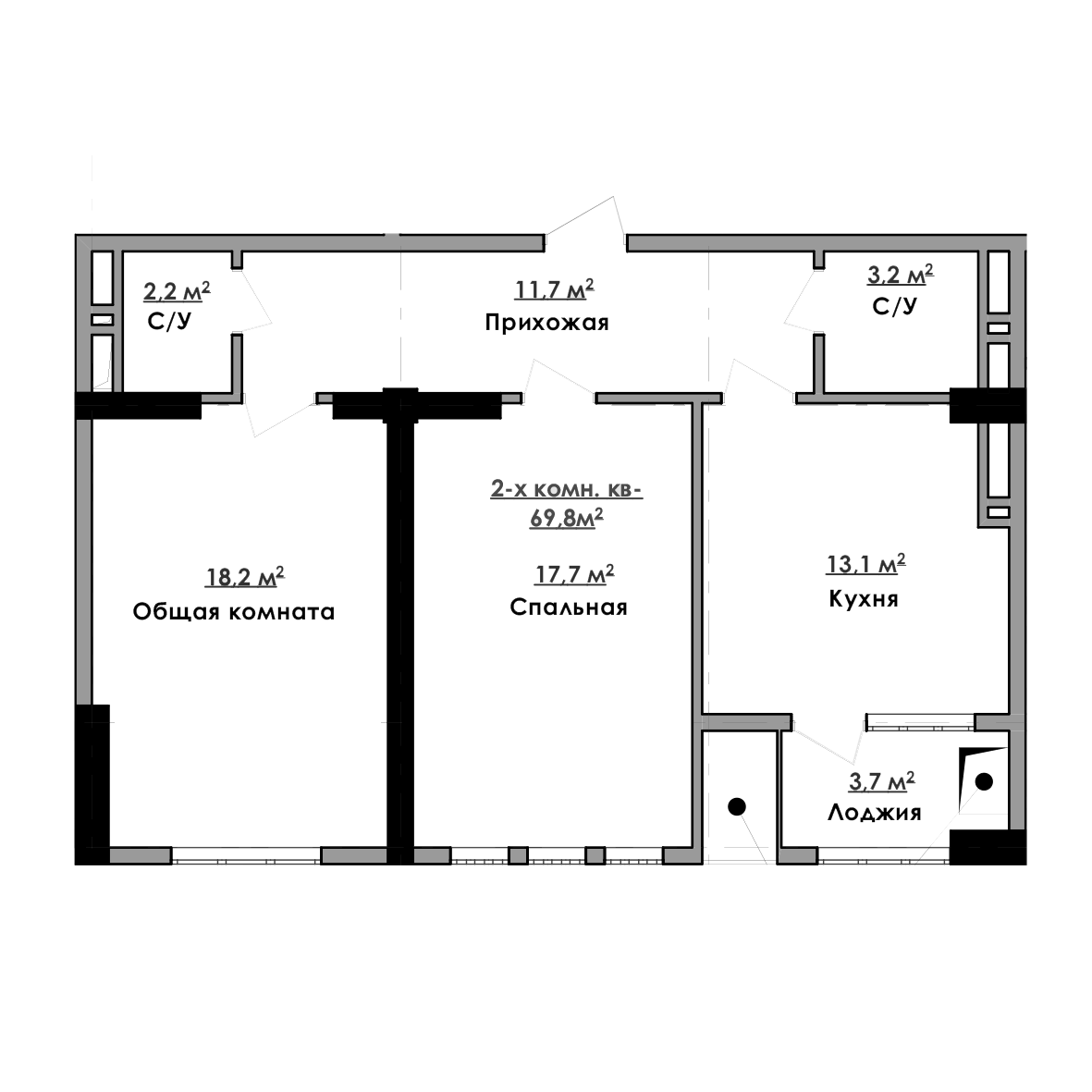 2-комн. Квартира 69.80 м² в ЖК «Империал»