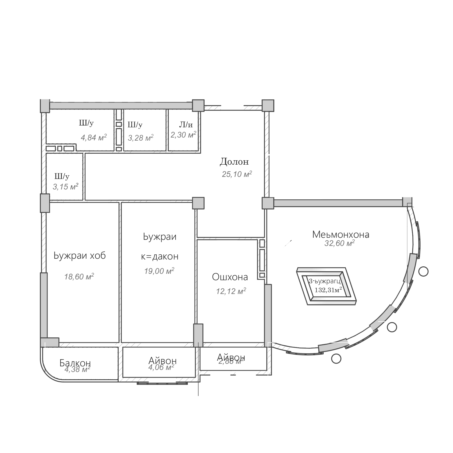 3-комн. Квартира 132.31 м² в ЖК «Согдиана»