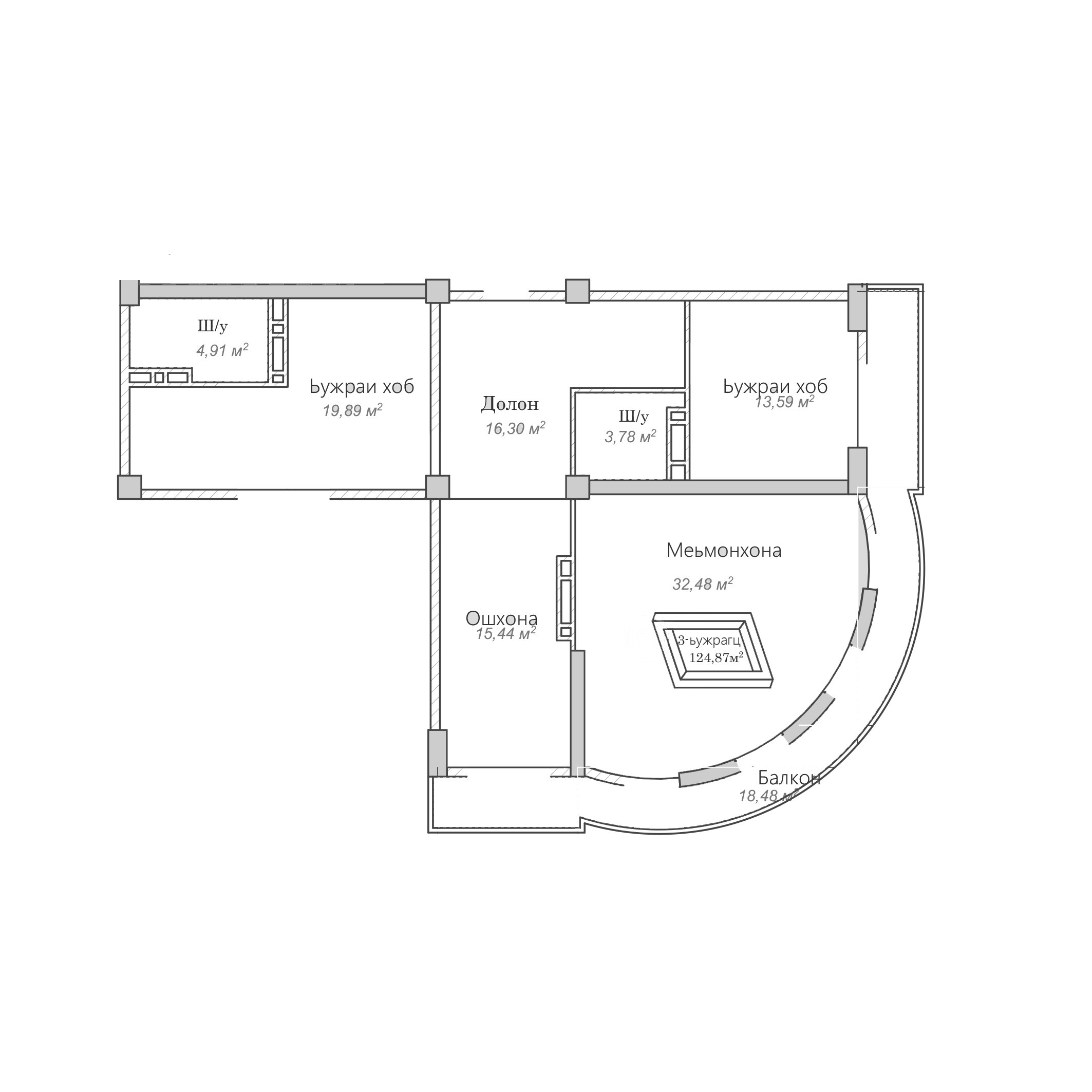2-комн. Квартира 124.87 м² в ЖК «Согдиана»
