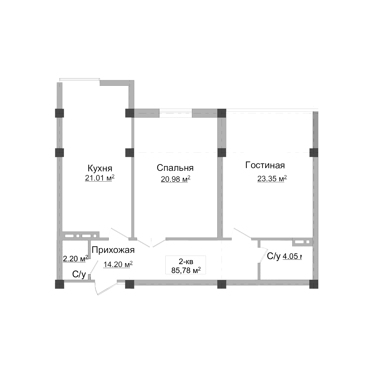 2-комн. Квартира 55.20 м² в ЖК «12 мкр 2»