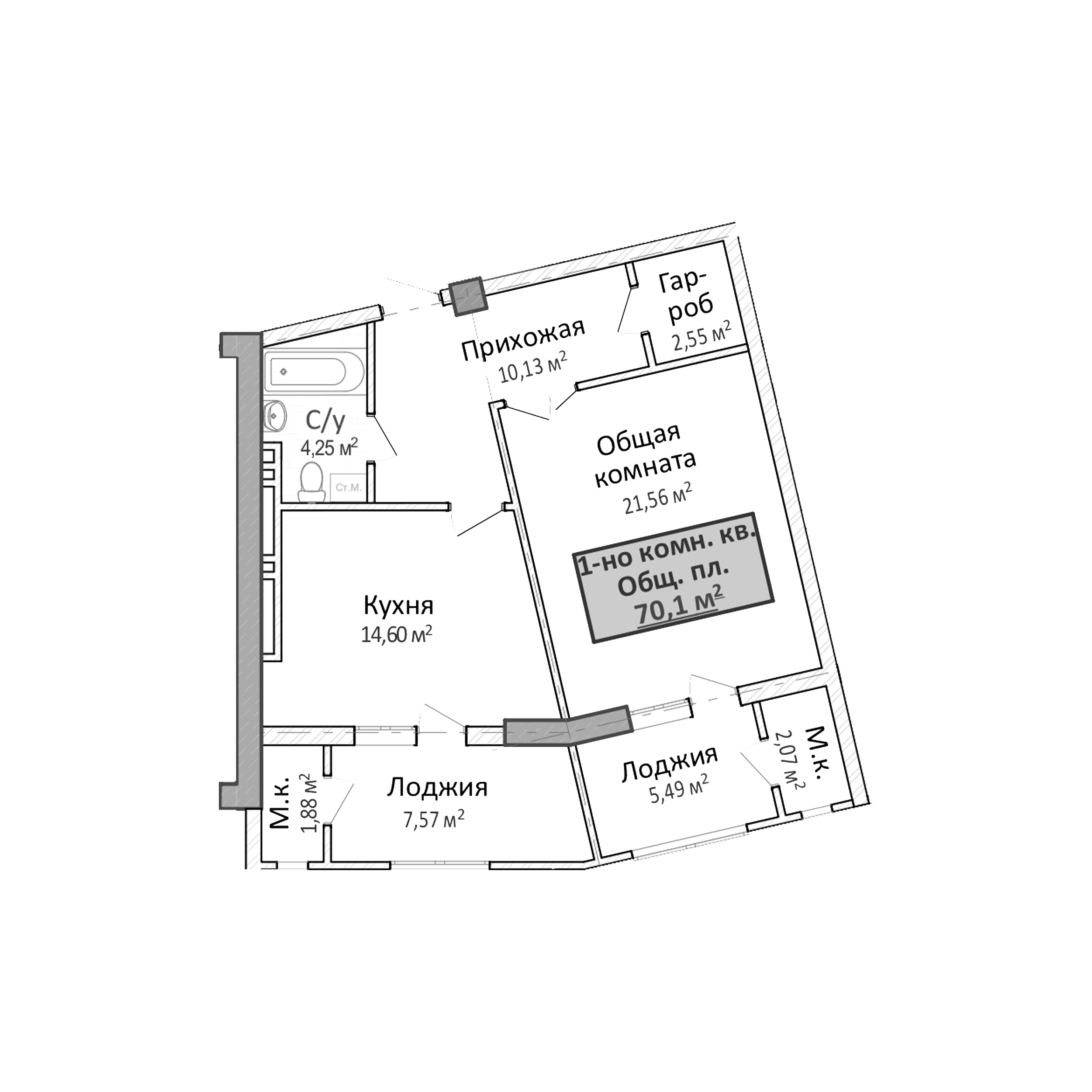 70.10 м²