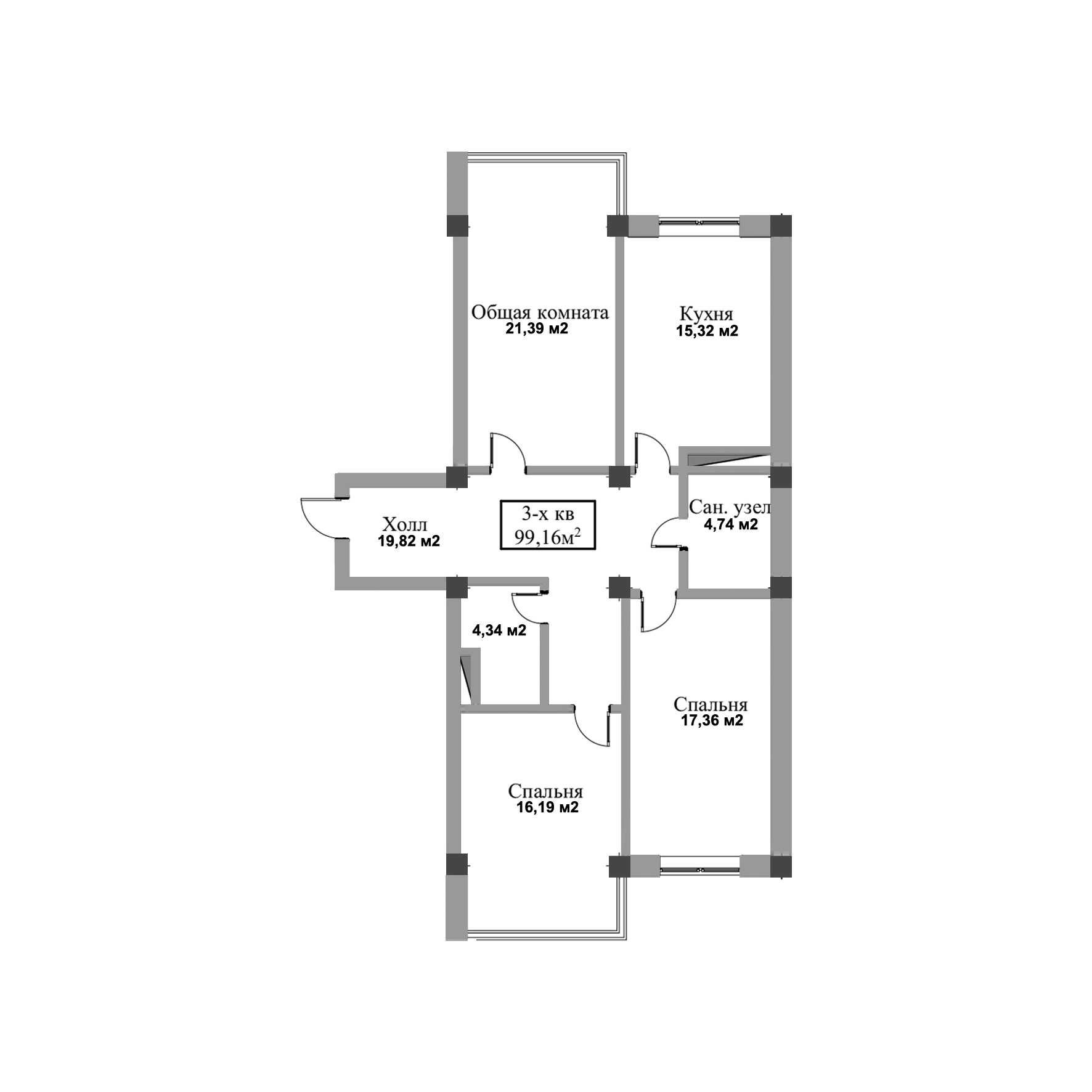 3-комн. Квартира 99.16 м² в ЖК «Ободи»
