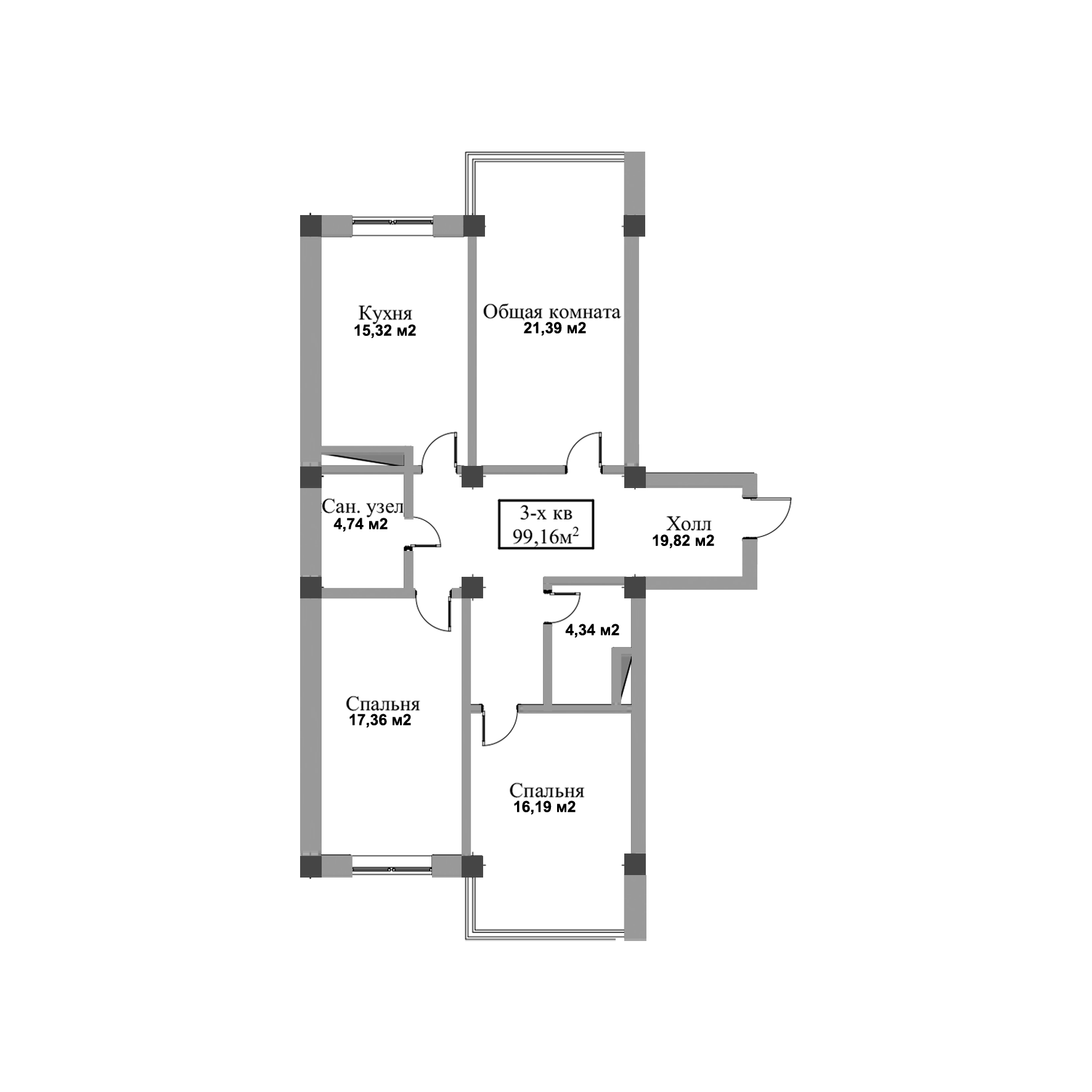 3-комн. Квартира 99.16 м² в ЖК «Ободи»