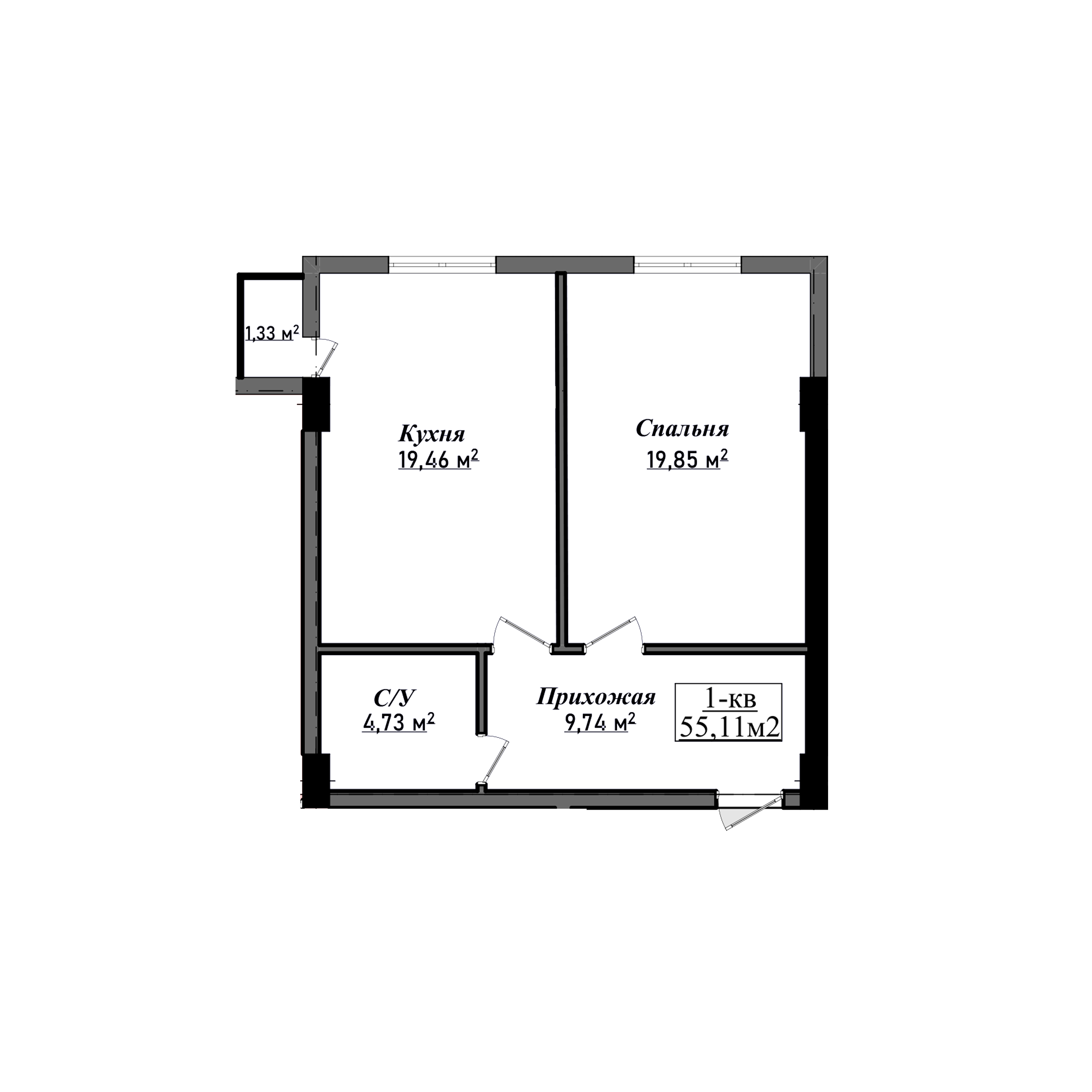 1-комн. Квартира 55.11 м² в ЖК «ЖД "Пахтакор 4»