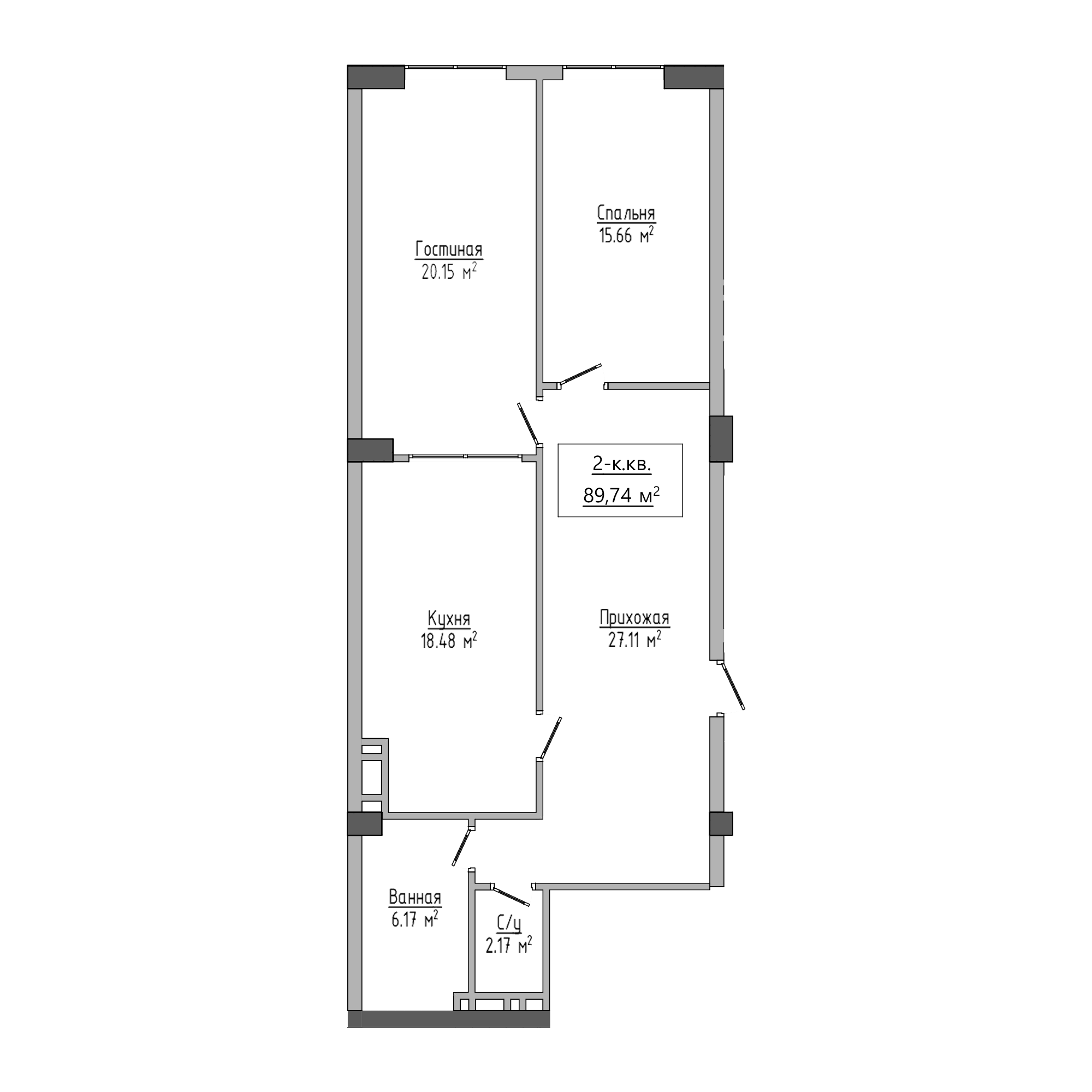 2-комн. Квартира 89.74 м² в ЖК «Оила»