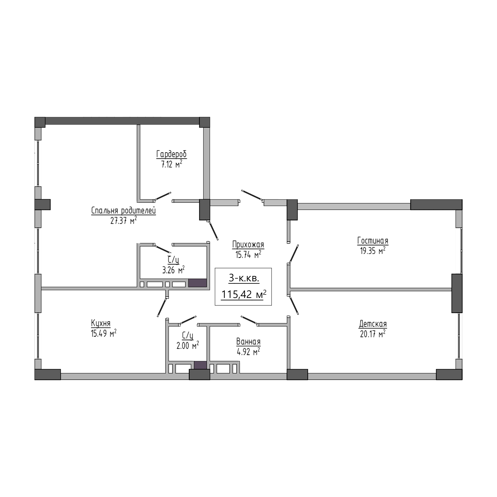 3-комн. Квартира 115.42 м² в ЖК «Оила»